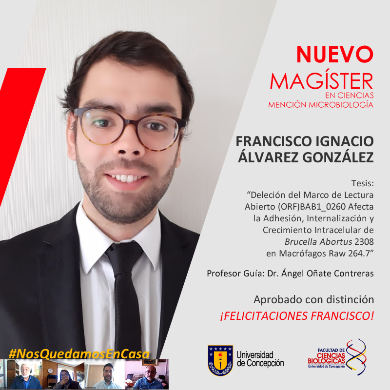 Felicitamos a nuestro nuevo Magíster en Ciencias Mención Microbiología, Sr. Francisco Ignacio Álvarez González, quien esta mañana fue aprobado con distinción al defender su tesis: “Deleción del Marco de Lectura […]