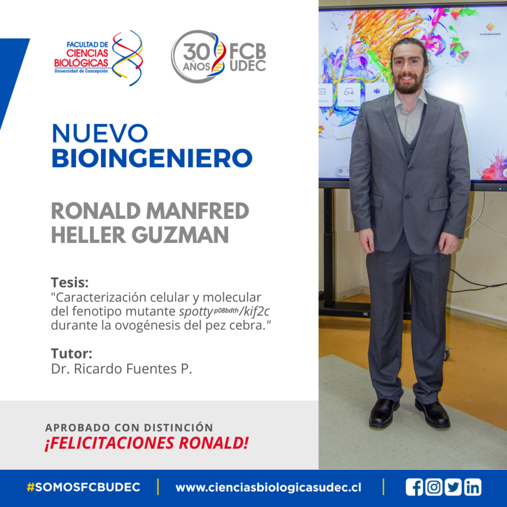 Ayer jueves 1 de diciembre defendió y aprobó con distinción su tesis: «Caracterización celular y molecular del fenotipo mutante spottyp08bdth/kif2c durante la ovogénesis del pez cebra.”, el nuevo bioingeniero Ronald Manfred Heller Guzmán. […]