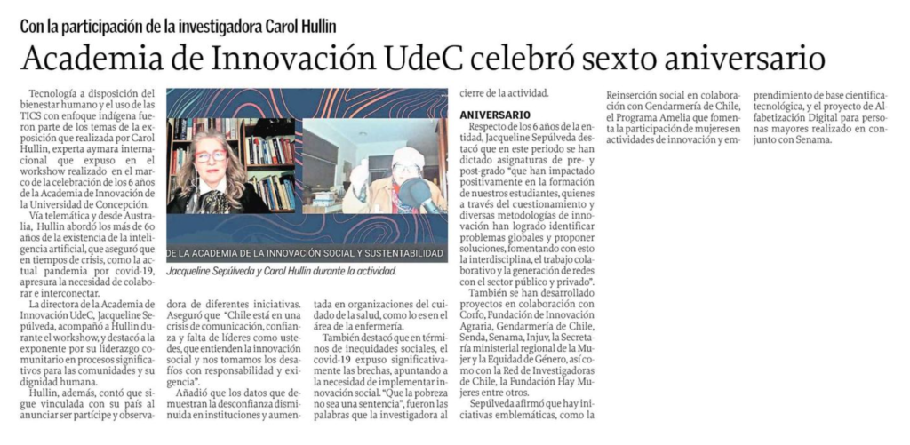 Hace 6 años nació la Academia de Innovación en la UdeC, iniciativa que ha permitido fortalecer el Perfil Innovador de estudiantes y consolidar la Innovación Social en la región. Su directora, también académica de nuestro departamento de Farmacología, la Dra. Jacqueline Sepúlveda, conversó con el Diario El Sur al respecto.
