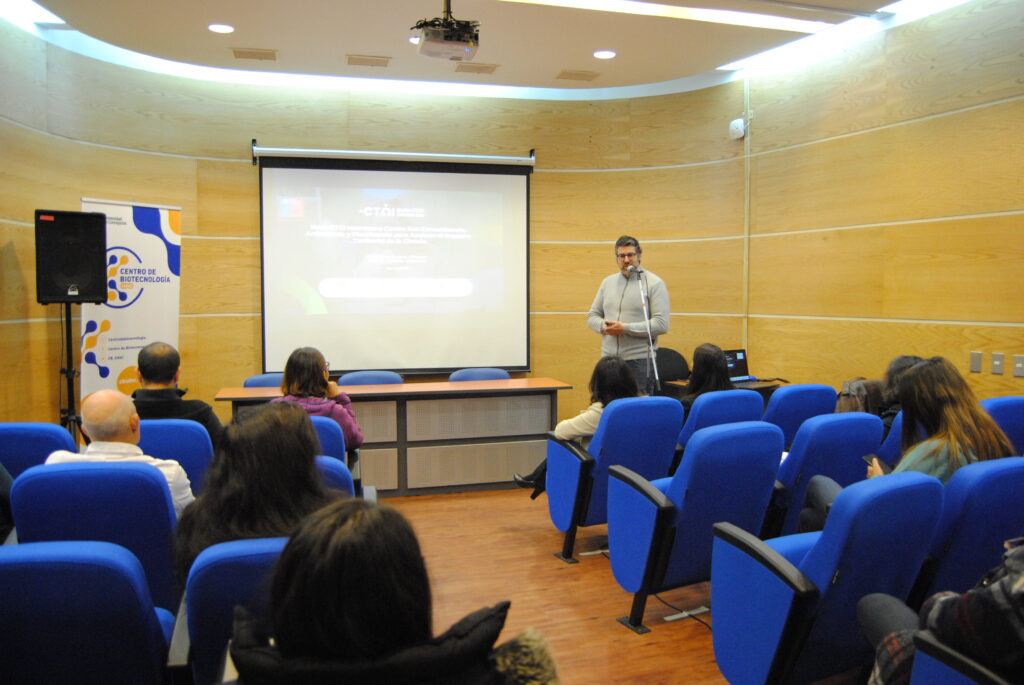 Dos presentaciones realizó el académico del Departamento de Farmacología FCB y director del Nodo CTCI Centro Sur, Dr. Alexis Salas, en el marco de las actividades organizadas por el CB-UdeC para celebrar el Día Internacional de la Biotecnología.