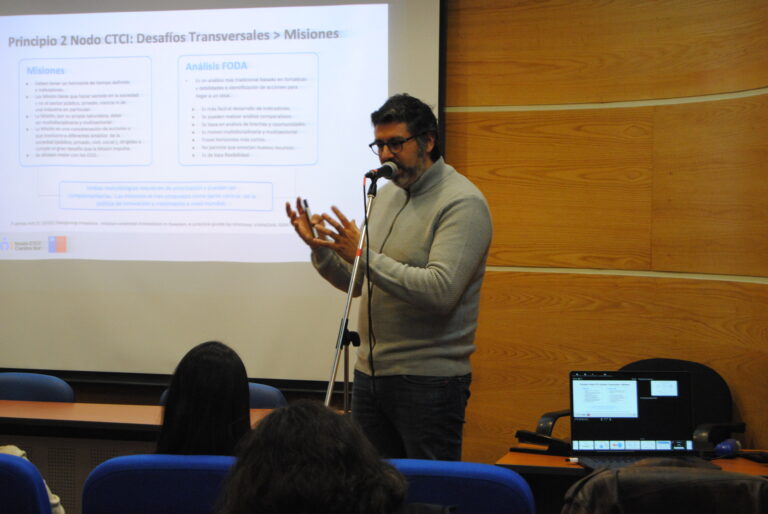 En su primera exposición entregó detalles del NODO CTCI Centro Sur, respecto al que detalló que “es un proyecto del área de redes y estrategias de la ANID, que está en su tercer año de ejecución. La idea fue mostrar los resultados del proyecto y cómo se ha trabajado con dos principios que son de ciencia abierta y de desarrollo de iniciativas basado en misiones”.