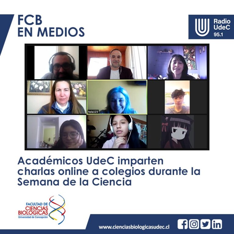 * La fisiopatología respiratoria y Covid-19, la fisiopatología del cáncer y una actualización sobre los avances en el desarrollo de nuevas vacunas, fueron algunos de los temas abordados por académicos de la Facultad de Ciencias Biológicas (FCB) en un ciclo de seis charlas online orientadas a toda la comunidad escolar perteneciente a seis establecimientos educacionales de la Región del Biobío.