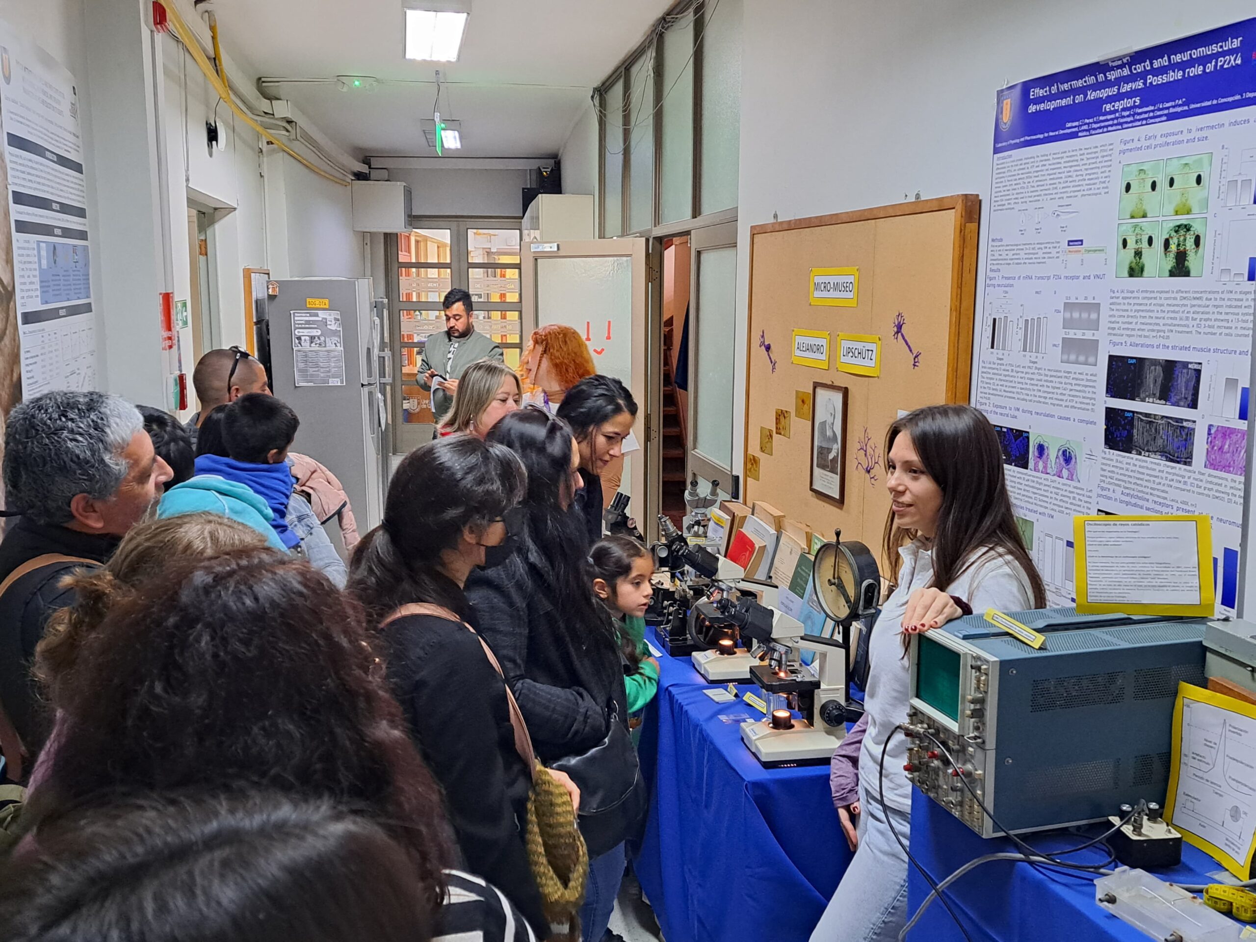 Una de las monitoras a cargo de recibir al público, fue Bernardita Salgado, licenciada de la carrera de Bioingeniería y estudiante de Magíster en la FCB, quien valoró participar por primera vez de esta experiencia. “Poder acercar nuestro quehacer e historia a la comunidad es algo muy bonito. Incluso, había niños que nos decían que cuando sean grandes quieren estudiar aquí y eso es algo que nos emociona”, comentó la joven científica.
