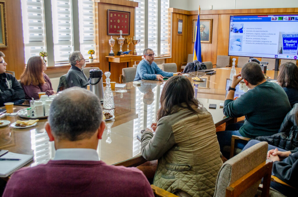 Durante su visita a Concepción, el Dr. Ortega se reunió con el comité asesor del CREAV e invitadas, Dra. Adriana Ribeiro (Coordinadora del Comité de Ética, Bioética y Bioseguridad) y la Ingeniera Elena Quevedo, encargada de estudio de costos.