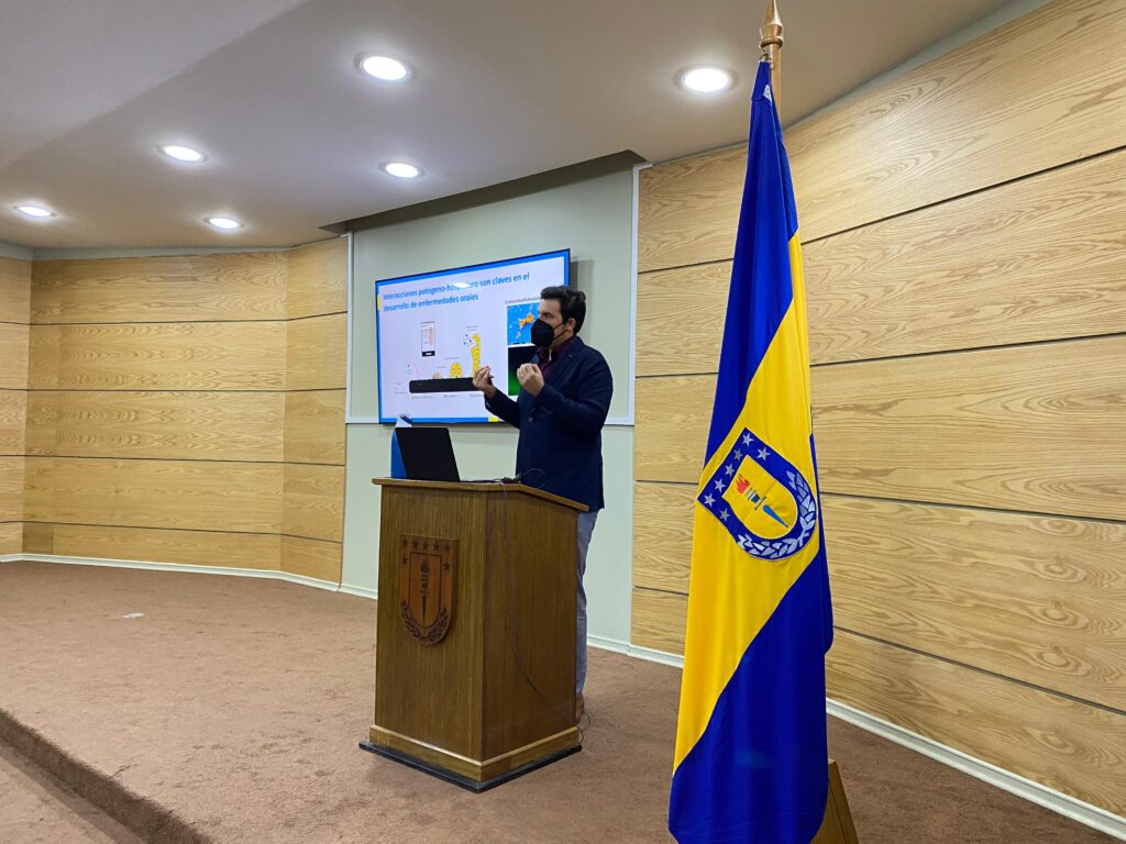 En esta ocasión, el encargado de exponer fue el Dr. Sebastián Aguayo, académico de la Pontificia Universidad Católica de Chile (PUC), quien presentó la charla “Estudiando Adhesión y Mecanobiología Bacteriana con Microscopía de Fuerza Atómica: ¿Qué rol juega la Glicación de superficies?”.