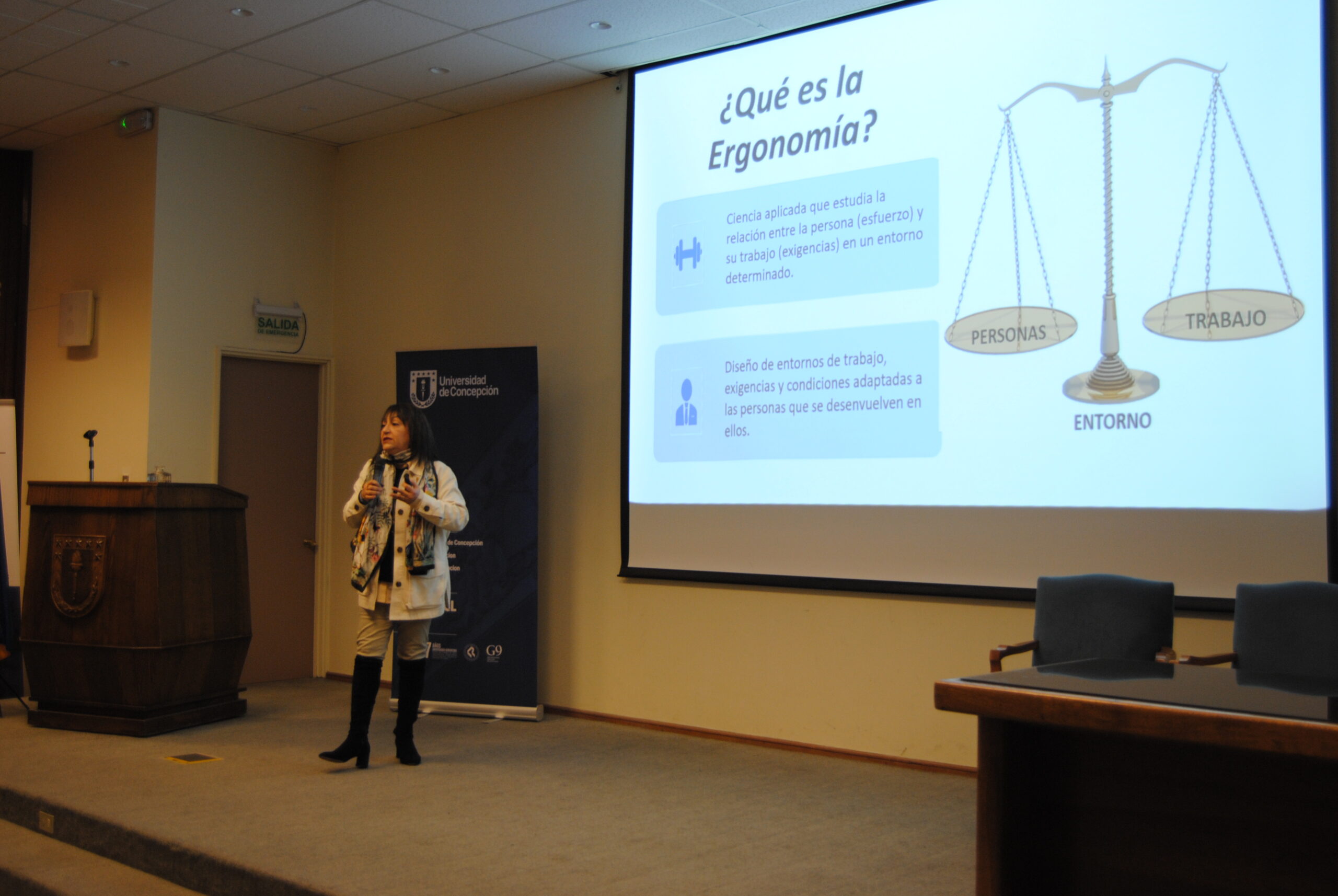 La Dra. Fabiola Maureira Carrasco, académica del Departamento de Ergonomía de la Facultad de Ciencias Biológicas (FCB), participó en el Seminario de Prevención de Riesgos y Perspectiva de Género de la Construcción, organizado por el Ministerio de Obras Públicas y la Universidad de Concepción.