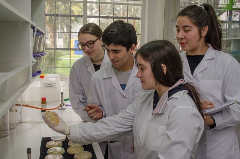 Pequeños en edad, pero grandes en curiosidad y motivación, son los cuatro alumnos de segundo medio A del Colegio Constitución, quienes llegaron hasta el Laboratorio de Patogenicidad Bacteriana del Departamento de Microbiología de la FCB, para comprobar las propiedades antibacteriales y antimicóticas de una planta endémica de la región del Maule, la cual se creía extinta hasta hace menos de una década.Carolina Herrera, Vicente Garrido, Florencia Márquez y Micaela Palma, todos de 15 años e integrantes del Taller de Ciencias de su establecimiento; trabajaron con un extracto de Adesmia bijuga, el cual ellos mismos desarrollaron anteriormente en el Laboratorio de Farmacognosia de la Facultad de Farmacología de la UdeC.Según detalla el profesor de biología y líder de este Taller, Andrés Freire, “los chicos investigaron que hay algunos estudios sobre la actividad antibacteriana que tienen otras Adesmias. A partir de esa información, ellos proponen que la Adesmia bijuga también podría tener estas propiedades”.Para comprobar su hipótesis, el grupo de alumnos puso a prueba las propiedades antimicrobianas y antimicóticas de la planta en cuatro bacterias patógenas, Staphylococcus aureus, Pseudomonas aeruginosa, Micrococcus spp, Escherichia coli; y el hongo Candida albicans.Micaela Palma, una de las estudiantes que participó en el experimento, señaló que “el laboratorio de la Facultad es super completo, nos recibieron super bien. Nos explicaron todo, pudimos hacer el experimento y, lo más importante, fue que nos funcionó con los gram positivos y con el hongo”.En este sentido, Freire indicó que “comprobamos que la hipótesis es correcta. Con estos datos nos pusimos bien ambiciosos y vamos a postular a todos los proyectos que podamos, como Explora, Expociencias y a una feria de la Universidad de Talca”, detalló el profesor Andrés Freire.Sobre la realización de este tipo de iniciativas, la académica de la FCB y encargada del Laboratorio de Patogenicidad Bacteriana, Apolinaria García, detalló que “logramos realizar esta actividad gracias a que seguimos manteniendo lazos con el profesor Andrés Freíre, que es exalumno nuestro del Magíster en Microbiología”. La investigadora agregó que “él tiene muy buena formación y ha traído otras veces a grupos de alumnos, lo que ha permitido extender el quehacer de la Microbiología en el laboratorio con los estudiantes”.Respecto a la relevancia de este tipo de vinculaciones, la Doctora indicó que “nuestra facultad está fomentando este tipo de actividades porque son vitales. A nosotros nos gusta mucho y la gente el laboratorio siempre disponible para hacer estas interacciones”, destacó.El trabajo del Taller de Ciencias del Colegio Constitución continuará realizándose en los próximos meses en los laboratorios de la FCB.
