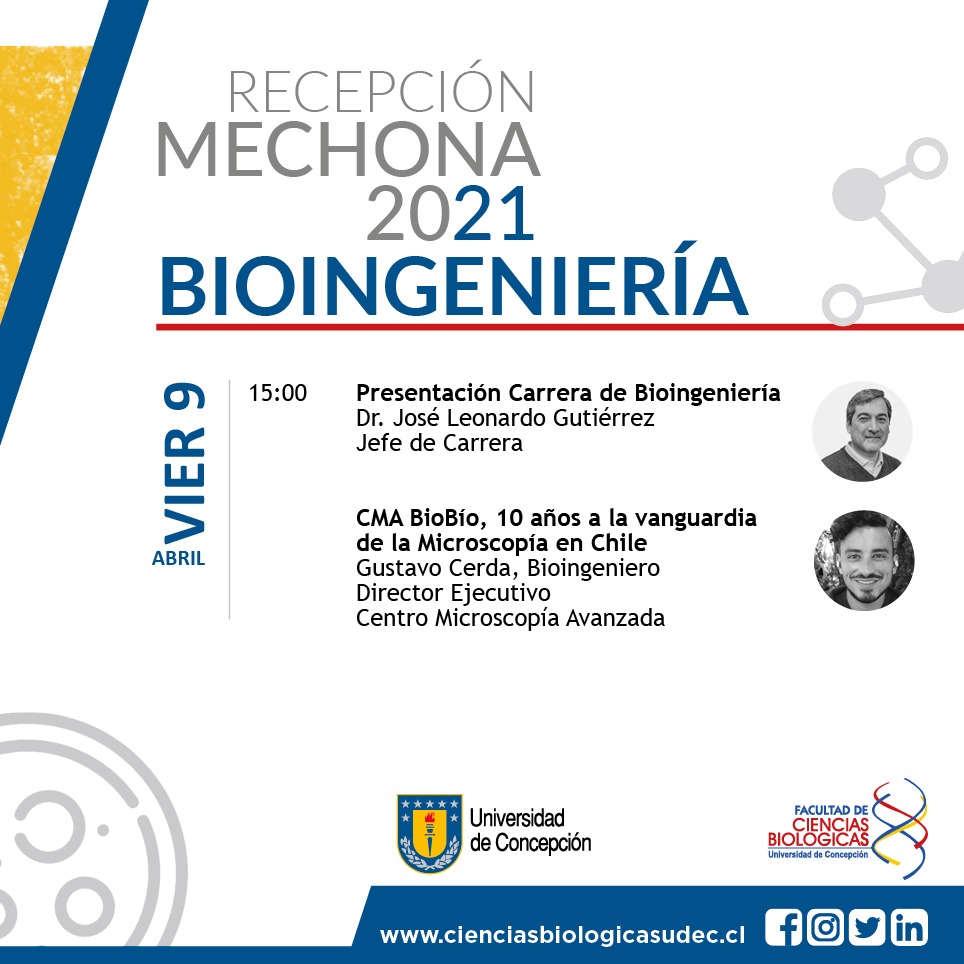 Atención #mechonesFCB 👨🔬👩🔬 ¿Cómo van esas clases?👀 Por acá seguimos con actividades de bienvenida para que su proceso de adaptación en la #UdeC sea lo más provechoso posible, a pesar de la virtualidad 💻🤓. Este viernes estaremos con el jefe de carrera de Bioingeniería, el Dr. Leonardo Gutiérrez y con el bioingeniero y director ejecutivo del Centro de Microscopía Avanzada 💪. ¡Nos vemos este viernes! 🧬 #bioingeniería #ciencias #vidauniversitaria #FCB #microscopia #somosFCB #ComunidadFCB