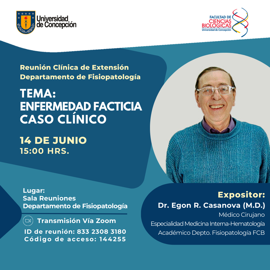 Las y los invitamos a la Reunión Clínica de Extensión del Departamento de Fisiopatología, donde el Dr. Egon Casanova presentará un caso clínico de enfermedad facticia.