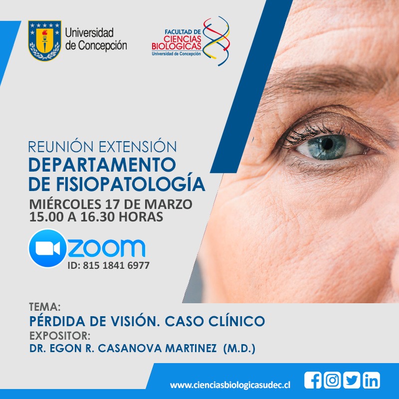 Este miércoles 17 los invitamos a participar de la primera reunión de extensión del Departamento de Fisiopatología 2021. En esta oportunidad estará con nosotros el Dr. Egon Casanova, quien revisará un caso clínica de pérdida de visión.