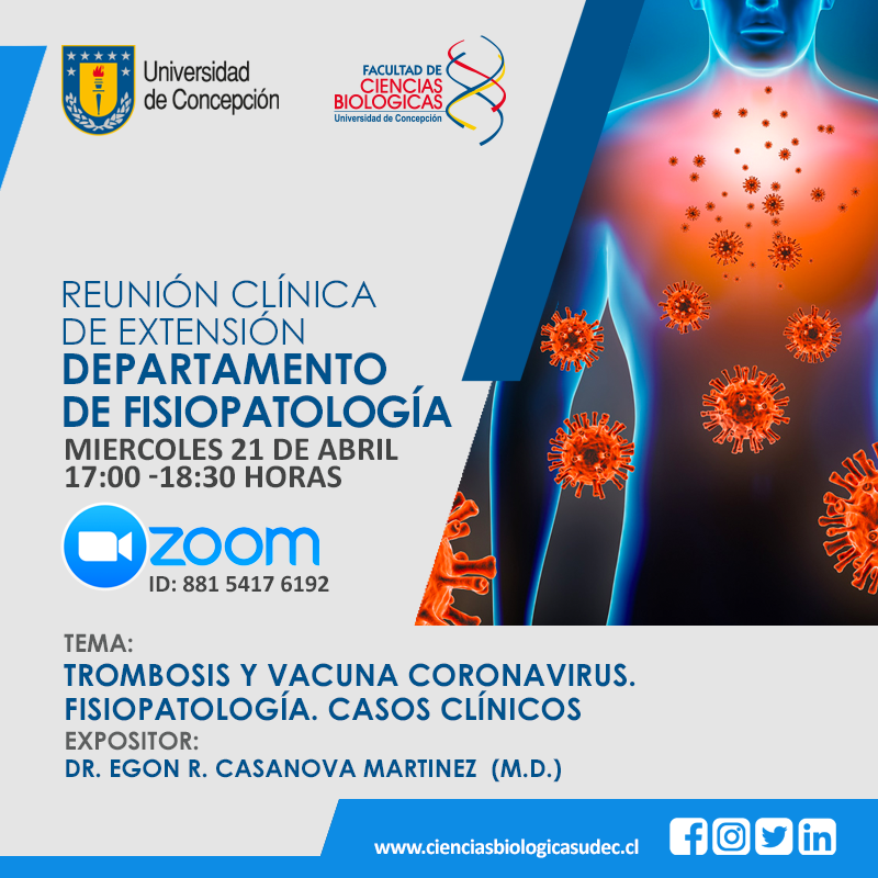 Desde nuestro Departamento de Fisiopatología les extendemos esta invitación para participar de la Reunión Clínica de Extensión de este miércoles 21, la cual abordará la trombosis en relación a la vacuna del #coronavirus ![]()