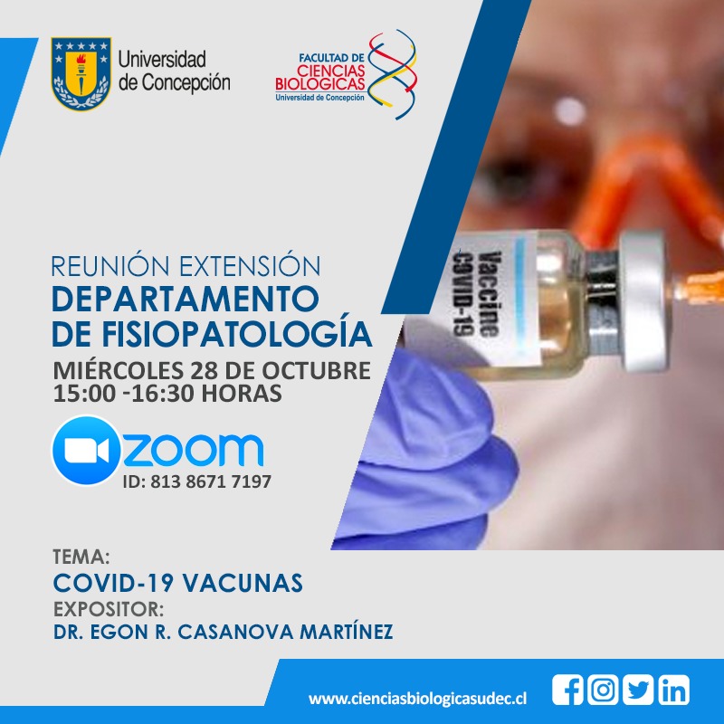 Compartimos la invitación para la reunión de extensión del Depto. de Fisiopatología! Este miércoles, junto al Dr. Egon Cosanova estaremos conversando sobre COVID.19 y vacunas.