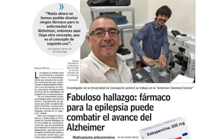 «Hasta ahora no hemos podido diseñar ningún fármaco para la enfermedad de Alzheimer, entonces aquí llega otro concepto, que es el concepto del segundo uso», señaló el Dr. Luis Aguayo, académico del Departamento de Fisiología de la Facultad de Ciencias Biológicas de la UdeC. El docente, quien lideró la investigación publicada recientemente por la revista ACS Chemistry Neuroscience, expuso que la Gabapentina actúa sobre la proteína beta amiloide, cuya acción tóxica se considera la principal causa de Alzheimer.