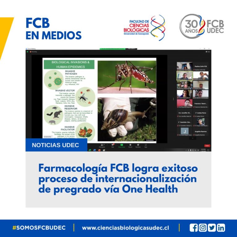 El proyecto “One Health: Un abordaje interdisciplinario de las enfermedades emergentes”, es una iniciativa que vincula a docentes y estudiantes de la UdeC y la Universidad de Murcia en España, en contextos de colaboración y aprendizaje. La información es de Noticias UdeC: https://noticias.udec.cl/farmacologia-fcb-logra-exitoso-proceso-de-internacionalizacion-de-pregrado-via-one-health/