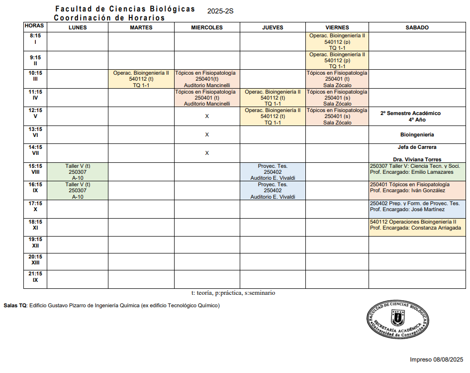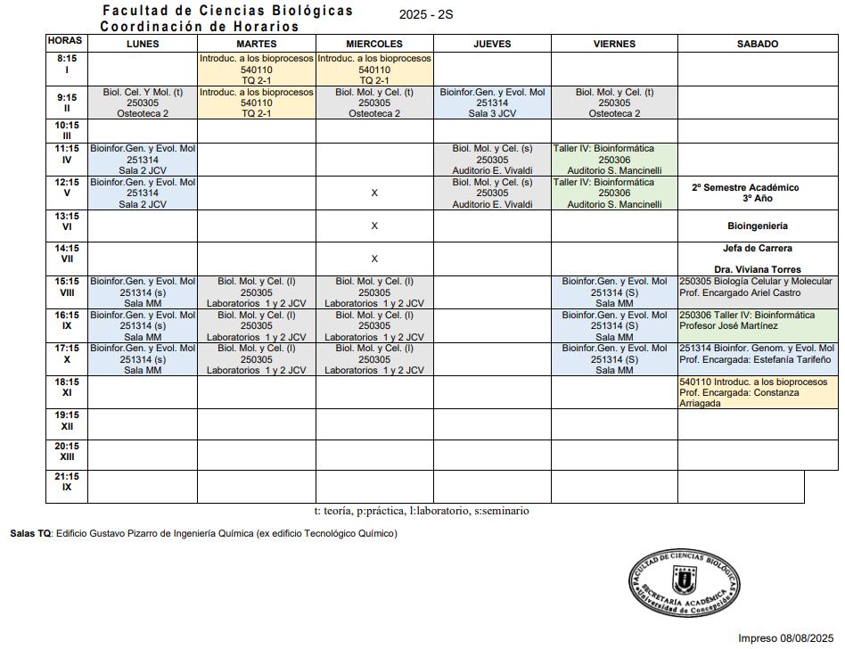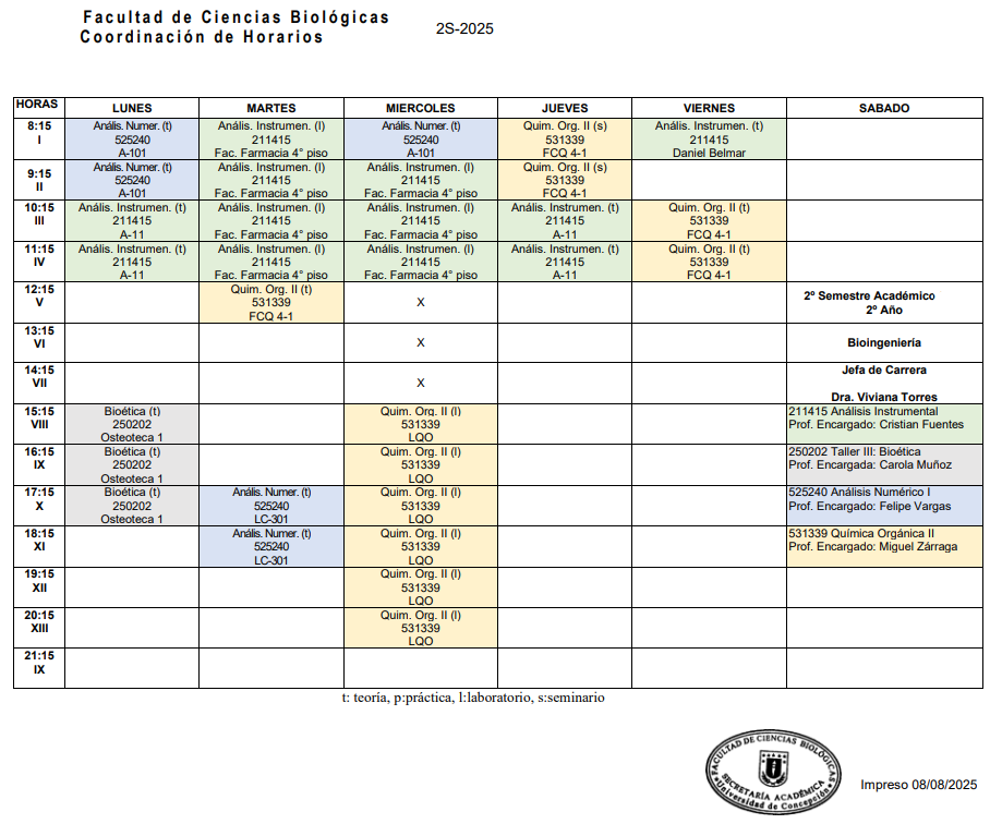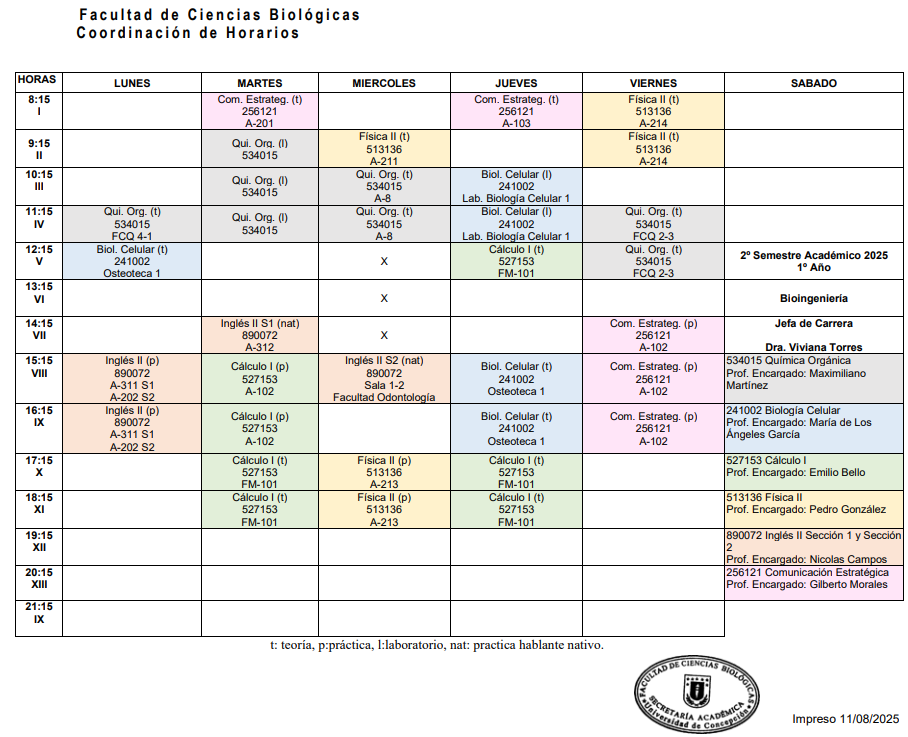 Horarios Bioingeniería 2025
