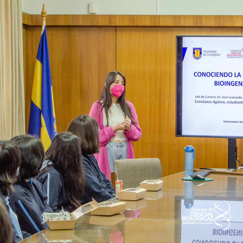 Al llegar, las estudiantes —junto a los docentes Carolina Muñoz, profesora jefa de las alumnas, y Gonzalo Eberhard, profesor acompañante— fueron recibidas en el auditorio de la FCB donde pudieron desayunar y escuchar a la alumna de Bioingeniería de tercer año, Constanza Agüero, quien realizó una presentación de la carrera, explicándoles las oportunidades laborales y conocimientos que esta entrega.