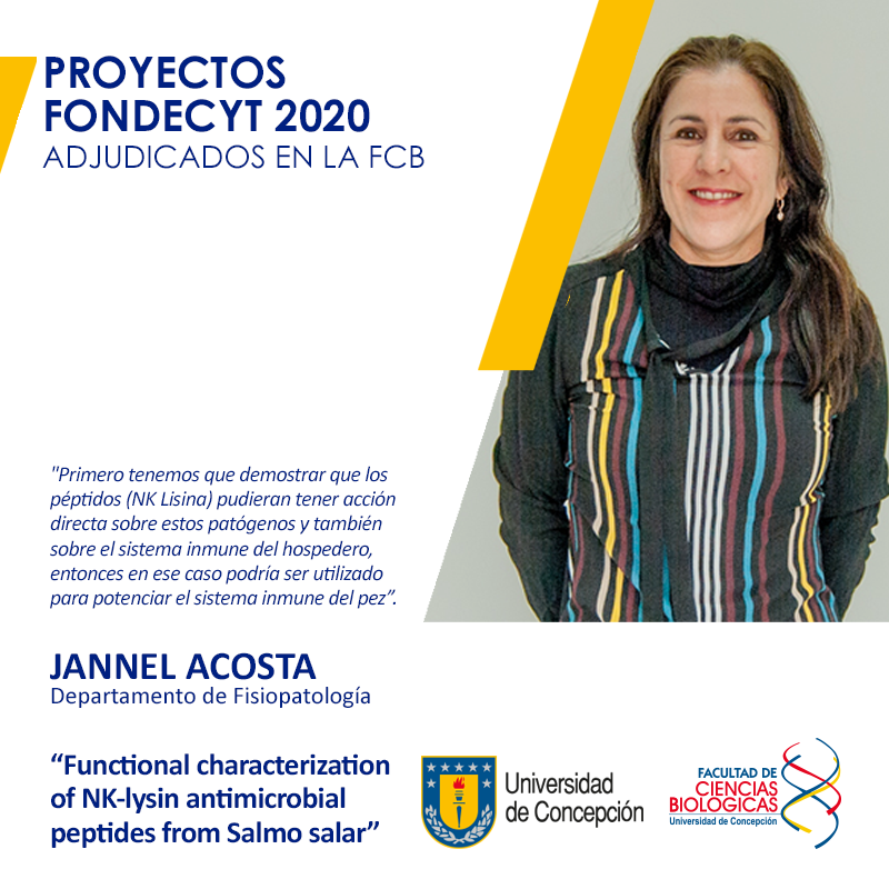 La investigadora desarrollará una línea de investigación orientada a profundizar en la caracterización inmunológica de los péptidos antimicrobianos tipo NK-Lisina, que representa la continuación de un proyecto Corfo presentado en 2016. “Hicimos una caracterización inicial de estos péptidos, aislándolos, determinando su actividad biológica en cuanto a la inmunomodulación en peces y, con esos resultados de base, escribimos el Fondecyt”.
