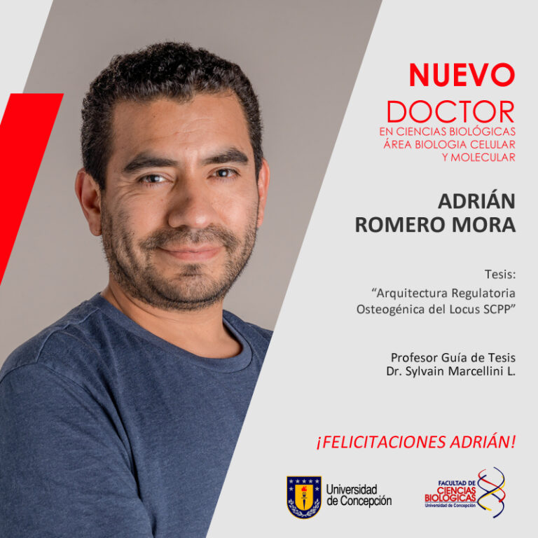 El pasado viernes 26 de noviembre aprobó su tesis titulada “Arquitectura Regulatoria Osteogénica del Locus SCPP”, Adrián Romero Mora, convirtiéndose así en el graduado N°163 del programa de Doctorado en Ciencias Biológicas, Área Biología Celular y Molecular.