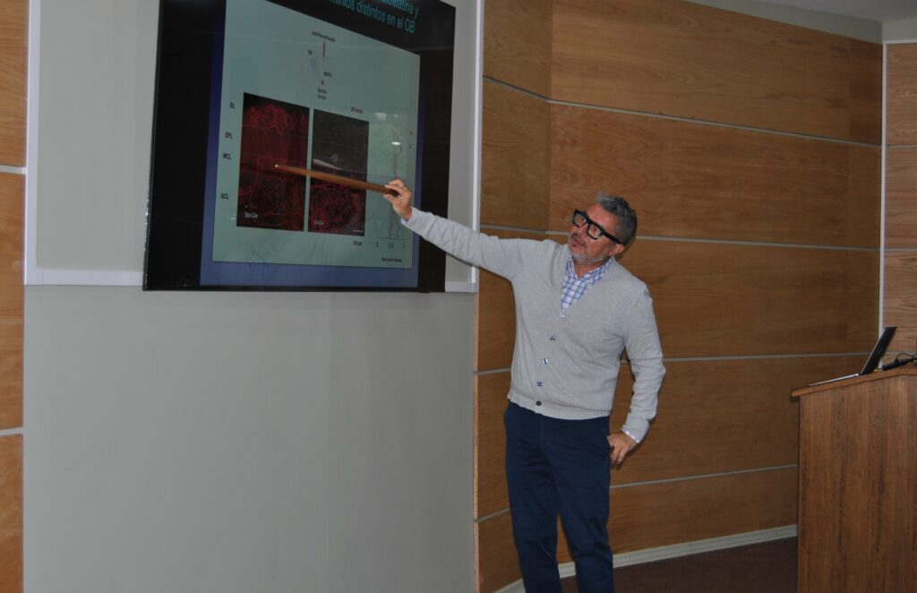 Junto con esta exposición, el profesor Araneda participó en otras actividades, como reuniones con estudiantes y trabajos en el laboratorio de Biología Celular.