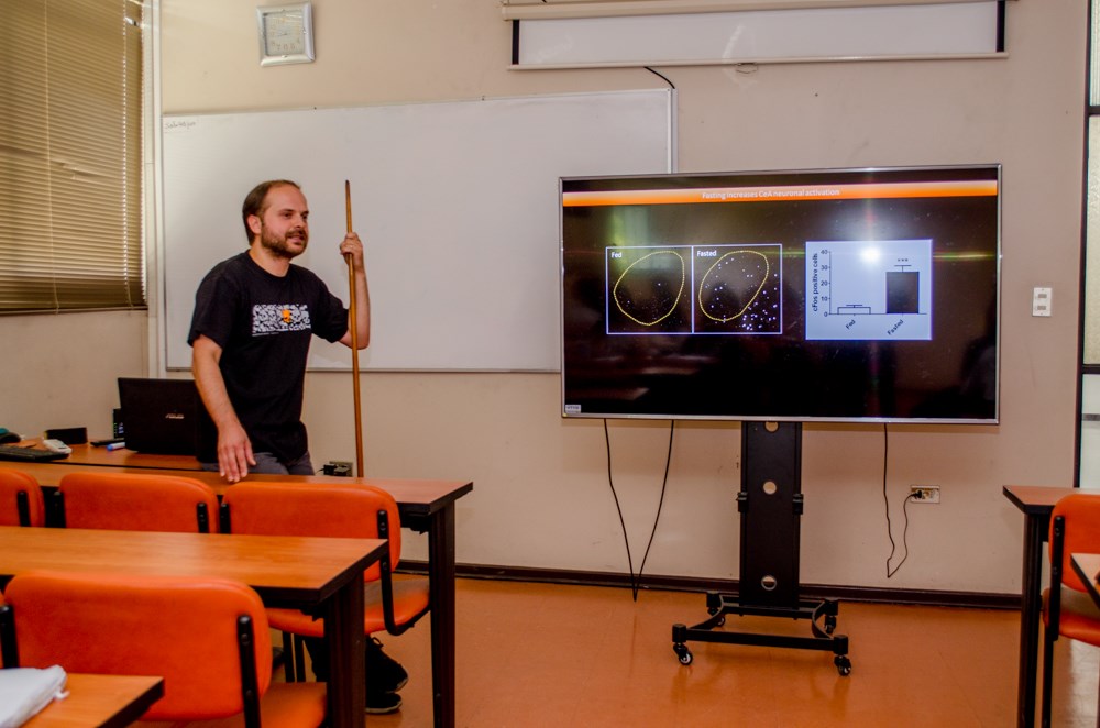 Dr. Christian Peters, post doc del Max Planck Institute of Neuroloy (Alemania), exponiendo sobre «Ghrelin effects in central amygdala».